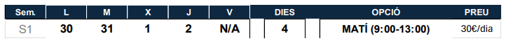 El inicio del casal es a las 9:00, con la posibilidad de servicio de acogida a partir de las 8:00 por un coste adicional de 5 €/día.